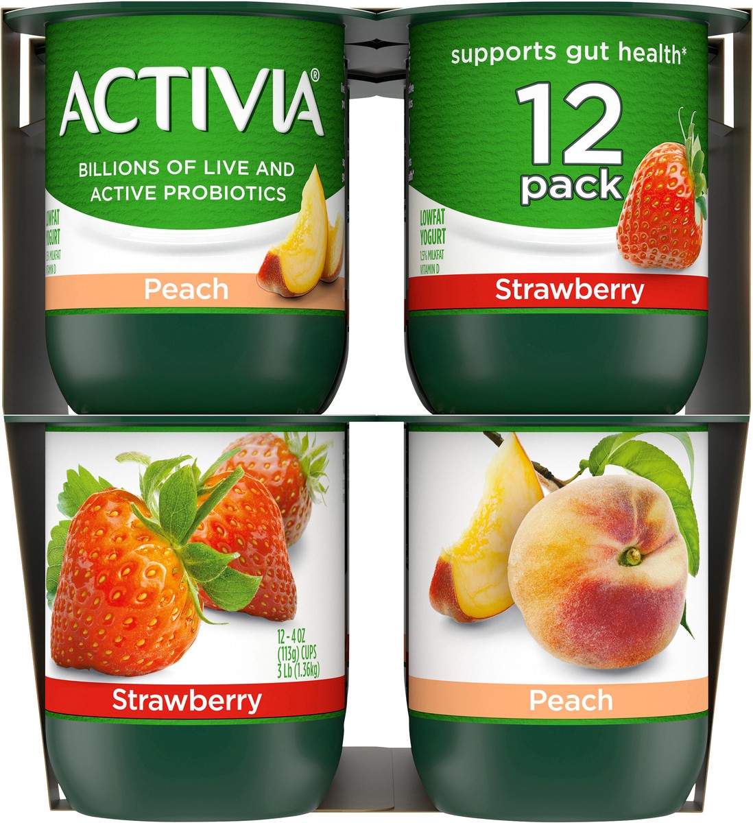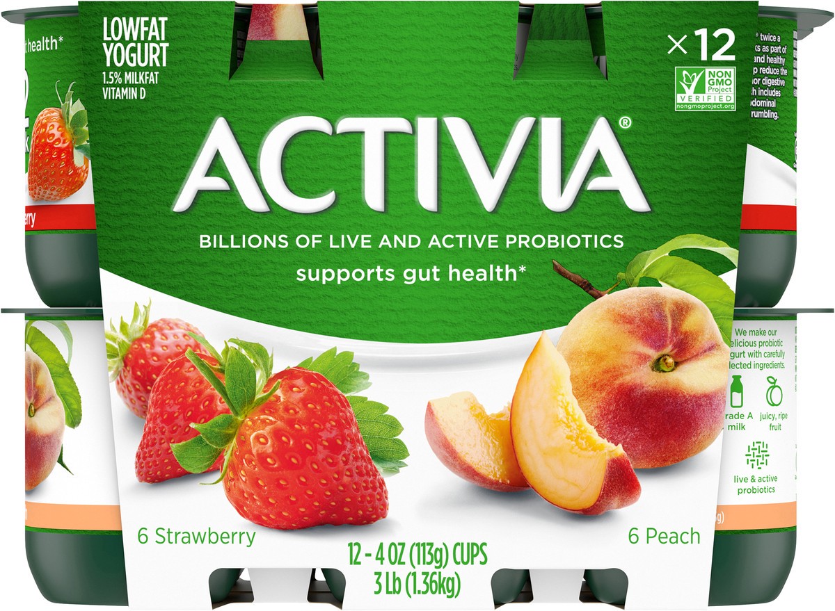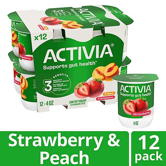 Brighten your daily routine with Activia Probiotic Peach & Strawberry Lowfat Yogurt. This creamy yogurt is full of fruity flavor, as well as billions of live and active probiotics. It''''s the delicio…