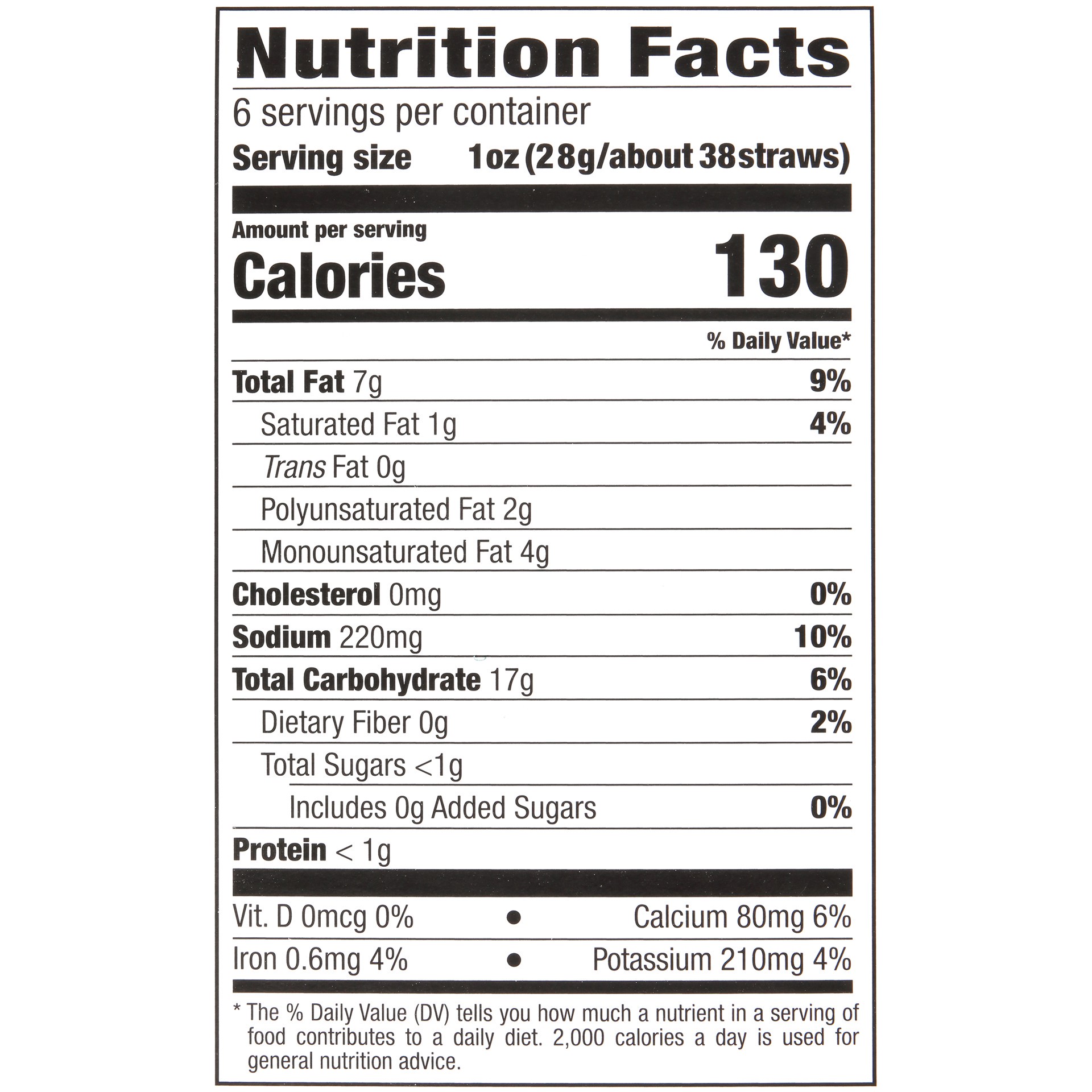 Vegetable and potato snack. No artificial flavors or preservatives. 0 mg cholesterol. 0 g trans fat. Certified Gluten-Free. Vegan. 30% less fat than leading potato chips (Per 1 oz Serving Fat: This Pr…