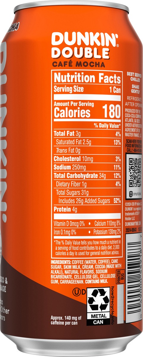 Dunkin' Double Café Mocha Iced Espresso Single Can, 15 fl oz