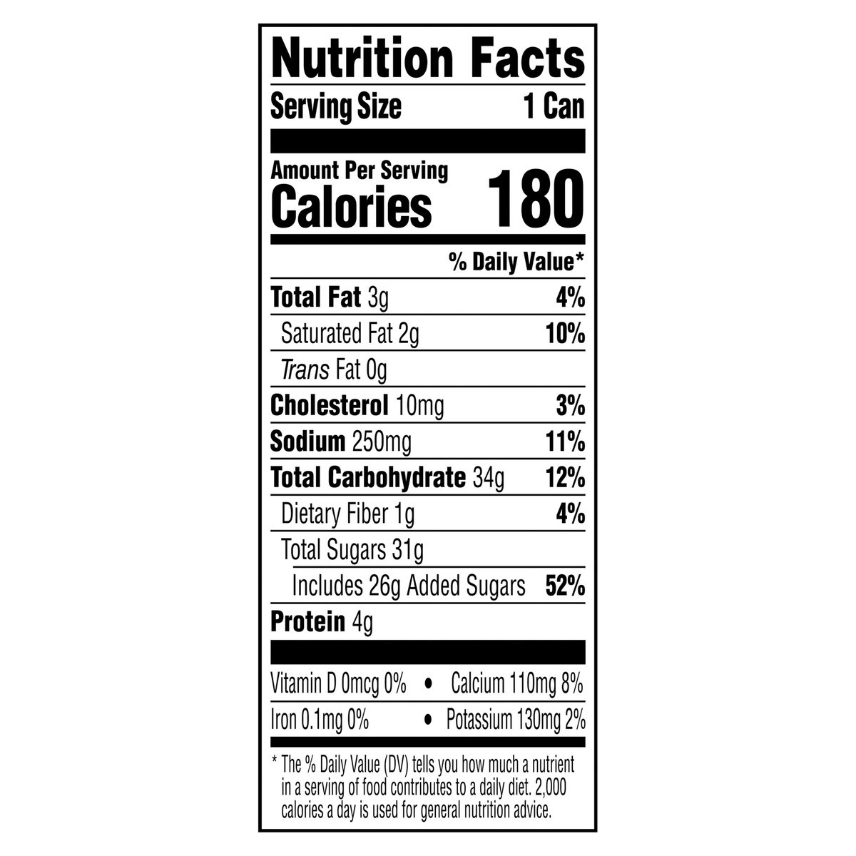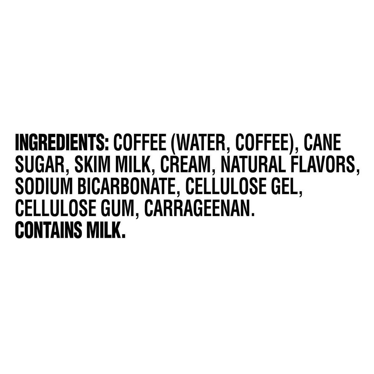 Coffee (Water, Coffee, Cane Sugar, Skim Milk, Cream, Natural Flavors, Sodium Bicarbonate, Cellulose Gel, Cellulose Gum, Carrageenan.