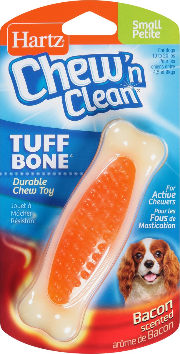 Hartz Chew N Clean Tuff Bone Toy + Treat For Dogs Bacon Scented Small - Each