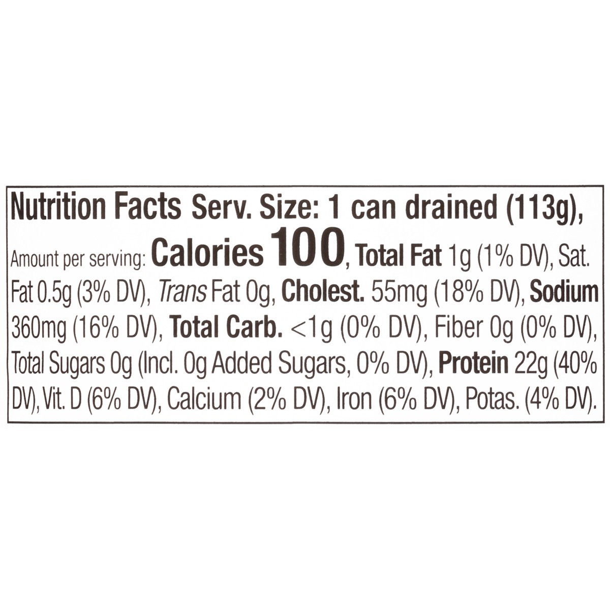 Contains 22 g protein. Gluten free. Non GMO Project verified. nongmoproject.org. In water. See can bottom for country of origin. bumblebee.com. tracemycatch.com For inquiries include number on can end…