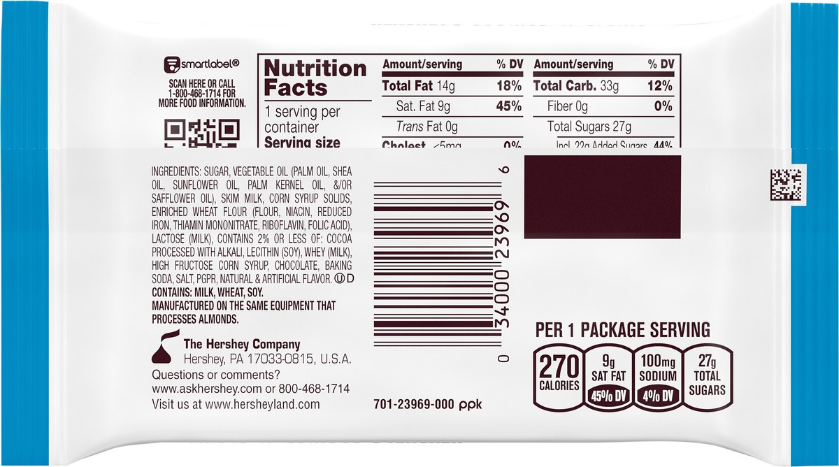 Sugar, Vegetable Oil (Palm Oil, Shea Oil, Sunflower Oil, Palm Kernel Oil, &/or Safflower Oil), Skim Milk, Corn Syrup Solids, Enriched Wheat Flour (Flour, Niacin, Reduced Iron, Thiamin Mononitrate, Rib…