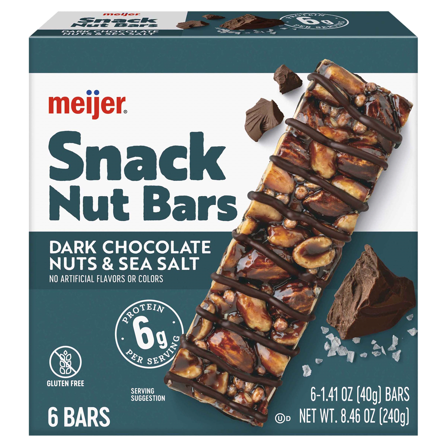 Whether on the go or staying home, the Meijer Snack Nut Bar is the perfect bite to grab when youre in a pinch. Indulgent flavors mixed with quality snacking nuts all wrapped individually, these bars a…