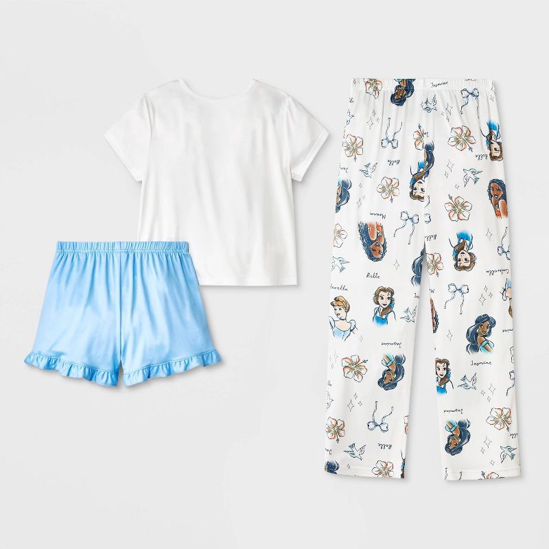 Girls' 3pc Disney Princesses Short Sleeve Pajama Set - Cream XS