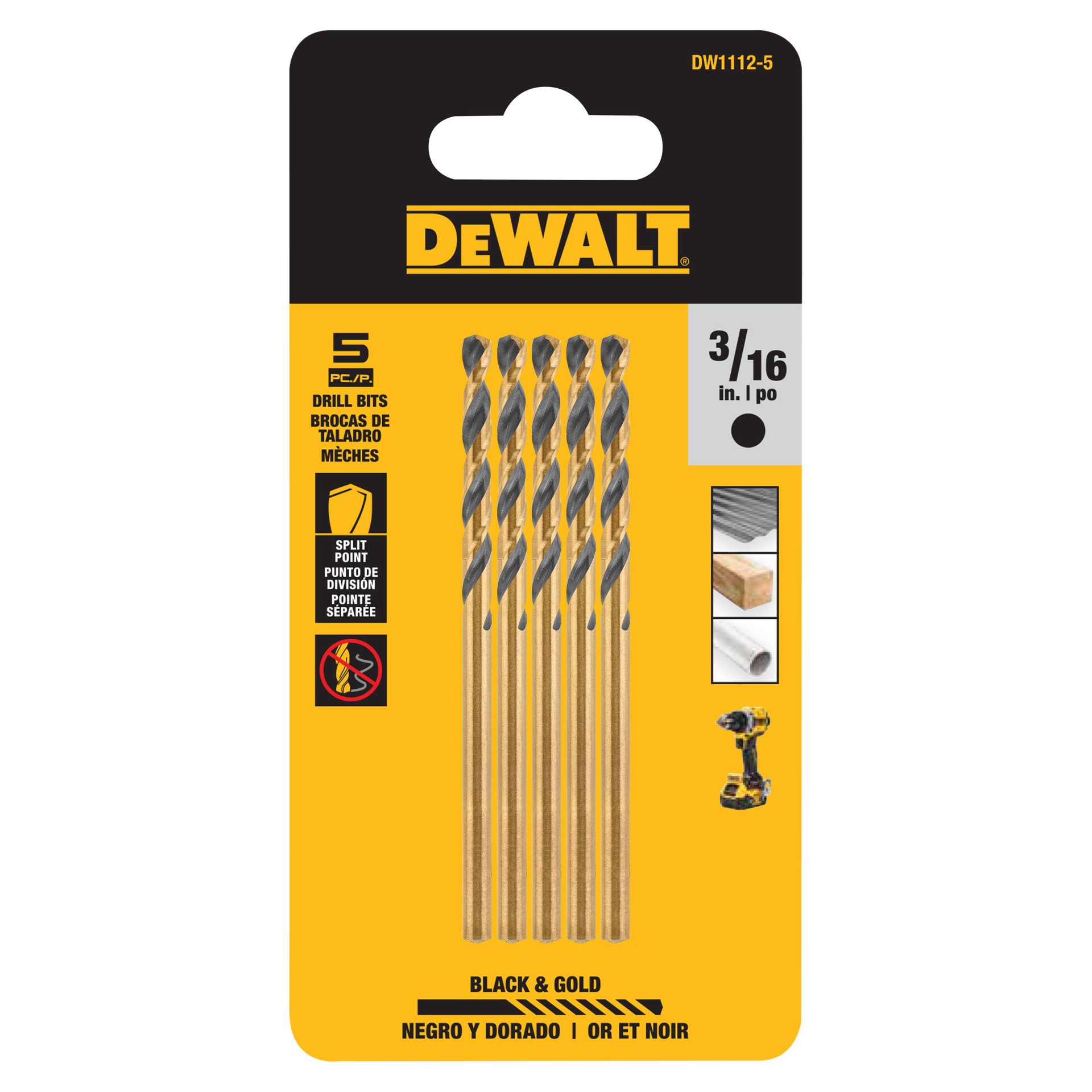 DEWALT BLACK GOLD 5 -Piece 3/16-in x 3-1/2-in Black and gold coated HSS Jobber length Twist Drill Bit Set