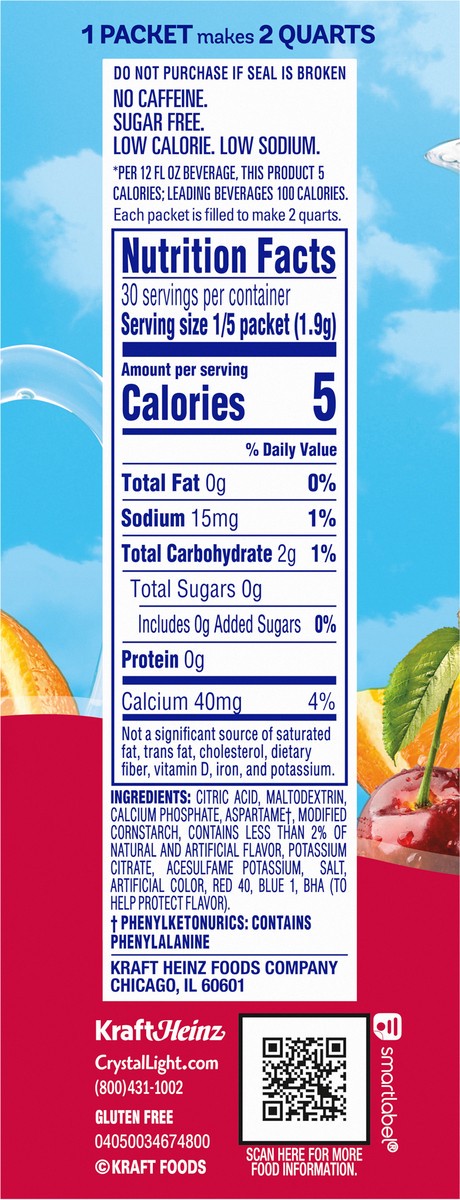 CITRIC ACID, MALTODEXTRIN, CALCIUM PHOSPHATE, ASPARTAME*, MODIFIED CORNSTARCH, CONTAINS LESS THAN 2% OF NATURAL AND ARTIFICIAL FLAVOR, POTASSIUM CITRATE, ACESULFAME POTASSIUM , SALT, ARTIFICIAL COLOR,…