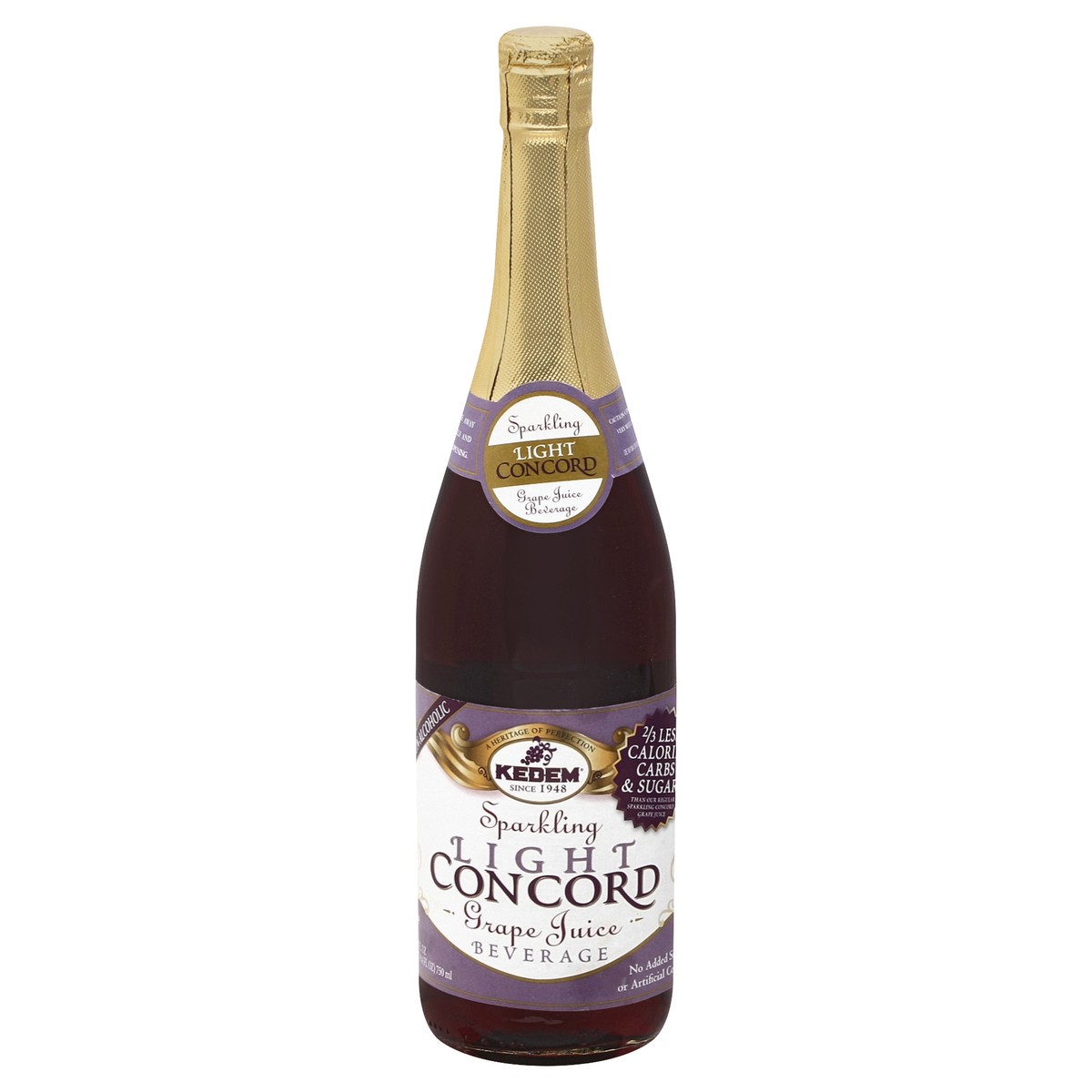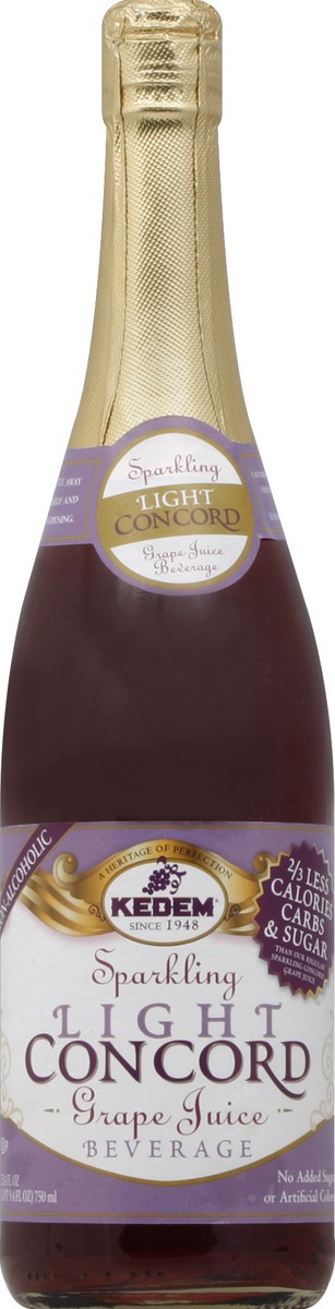 Non-Alcoholic. 2/3 less calories, carbs & sugar (than our regular sparkling concord grape juice). No added sugar or artificial colors. Since 1948. A heritage of perfection. Kedem Sparkling Light Conco…