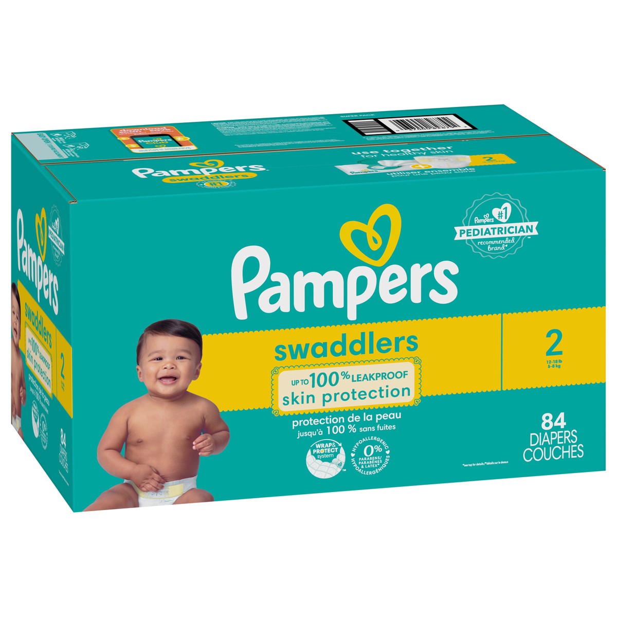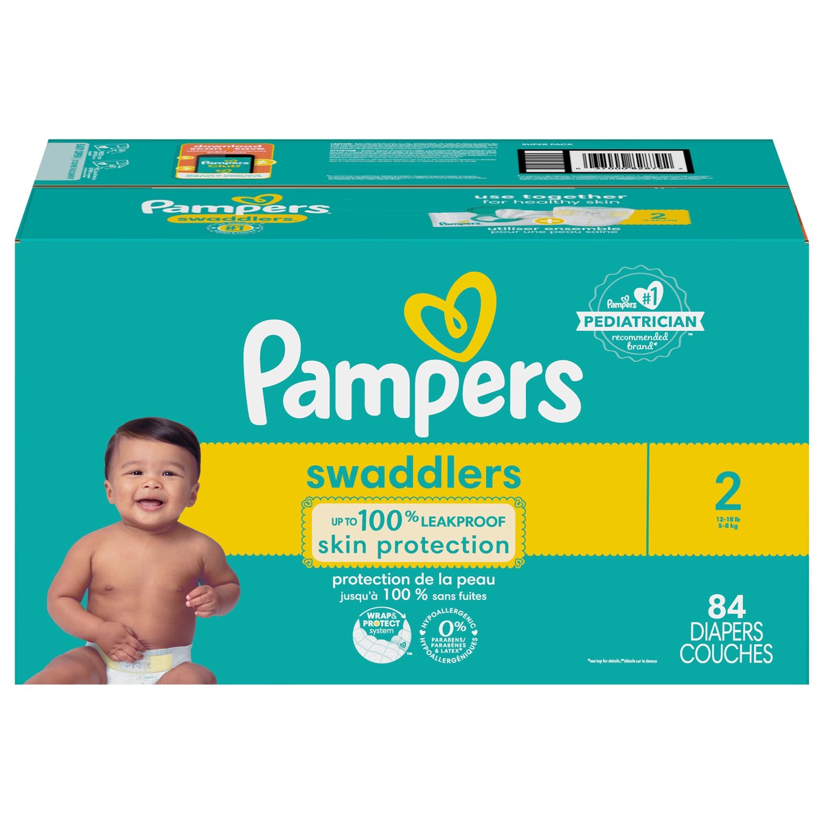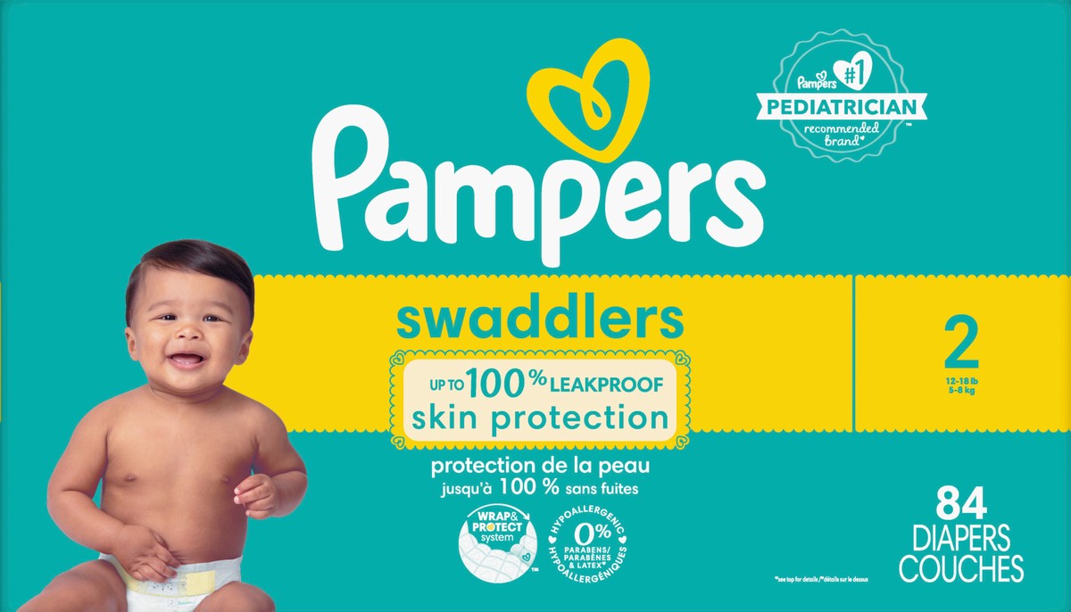 Pampers Swaddlers Diapers, Size S2 (10-22 lbs), 84 Count, Absorbent, Keeps Baby Dry and Comfortable, Pediatrician Recommended Skin Safe Disposable Baby Diaper