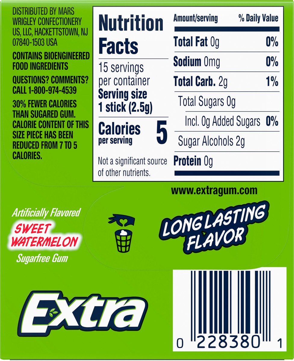 Extra Sugar Free Chewing Gum Sweet Watermelon Single Pack - 15 Count