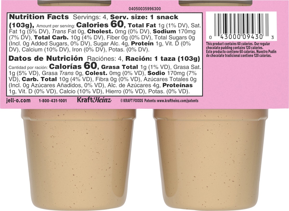 Jell-O Zero Sugar Churro Delicioso with Other Natural Flavors Ready-to-Eat Pudding Snack Cups, 4 ct Cups