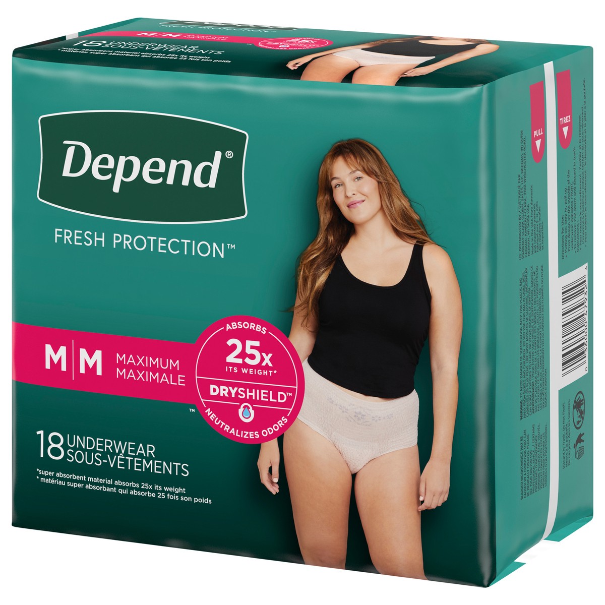 Protect against bladder leaks with Depend Fresh Protection Adult Incontinence Underwear for Women with Maximum Absorbency for all day protection guaranteed*. Leaks don''t stand a chance thanks to a su…