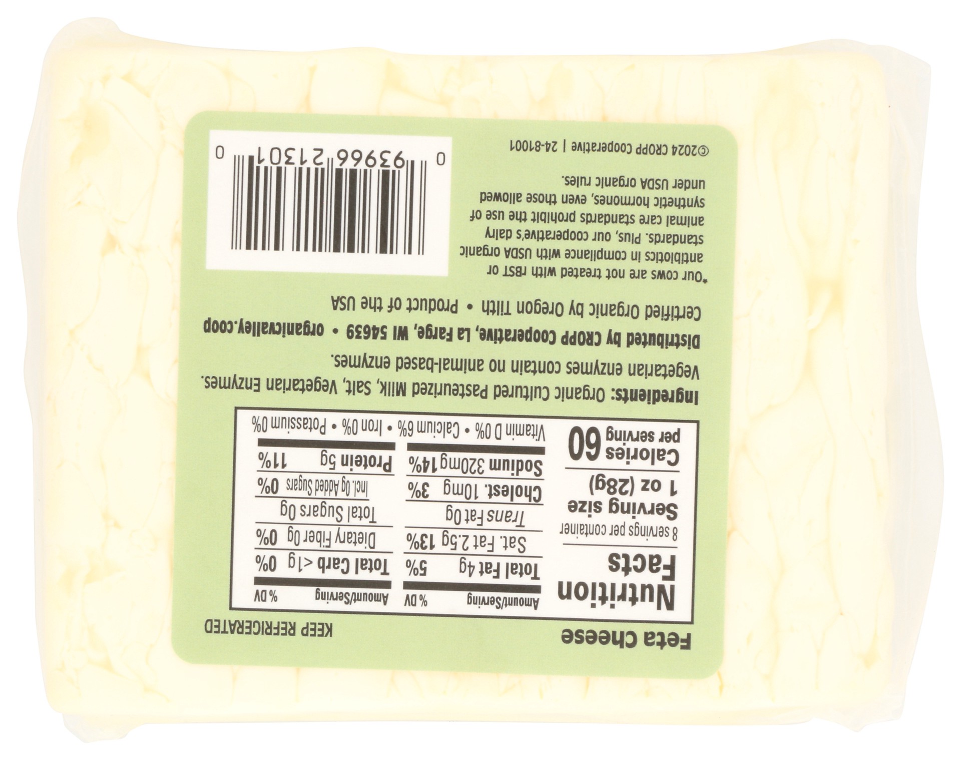 Organic Valley Feta,og2 Cow Milk 8oz - 8 Oz