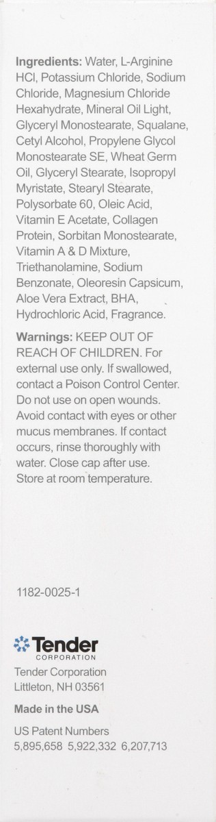 Water, L-Arginine HCl, Potassium Chloride, Sodium Chloride, Magnesium Chloride, Hexahydrate, Mineral Oil Light, Glyceryl Monostearate, Squalane, Cetyl Alcohol, Propylene Glycol Monostearate SE, Wheat …