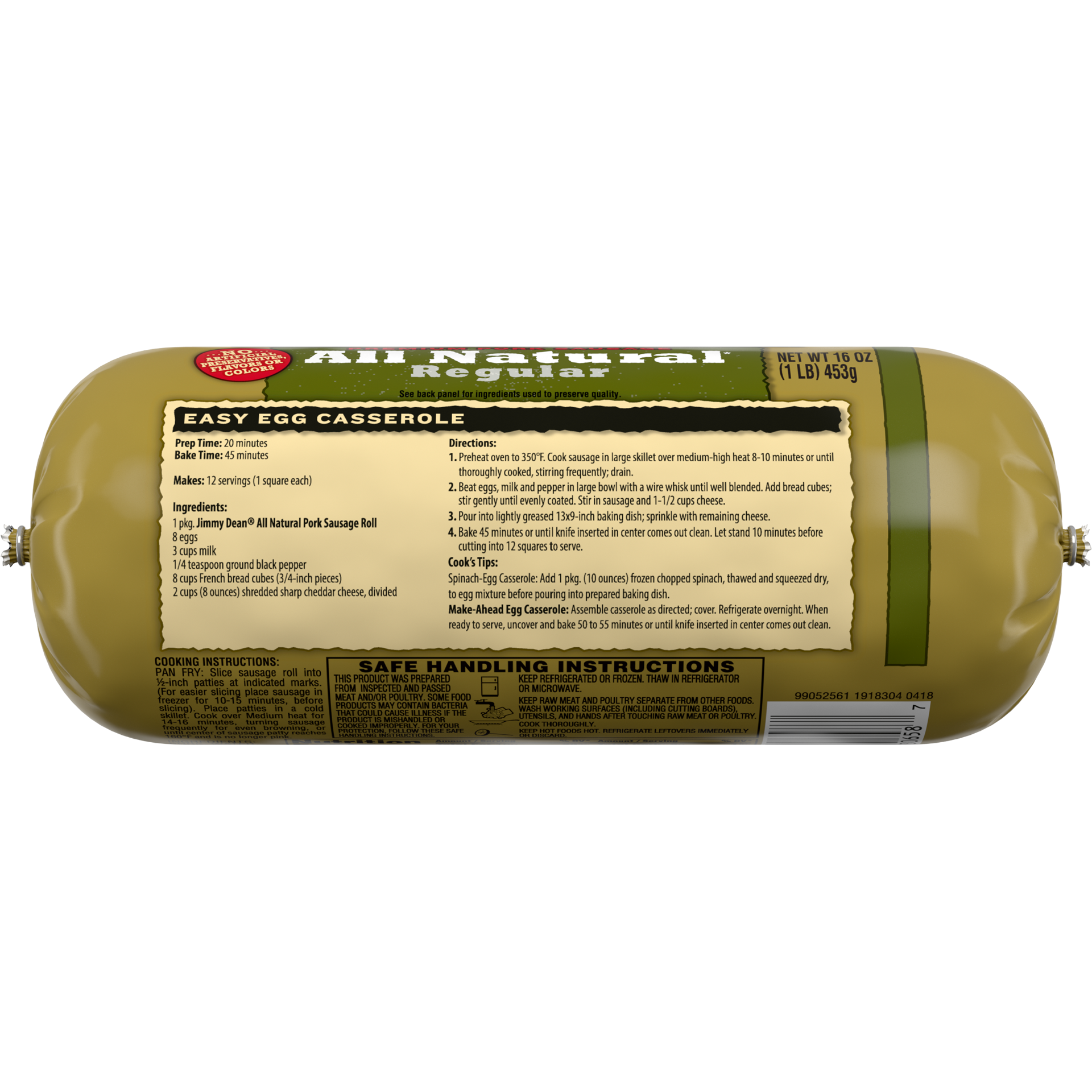Jimmy Dean All Natural Pork Sausage Roll - 16 Oz