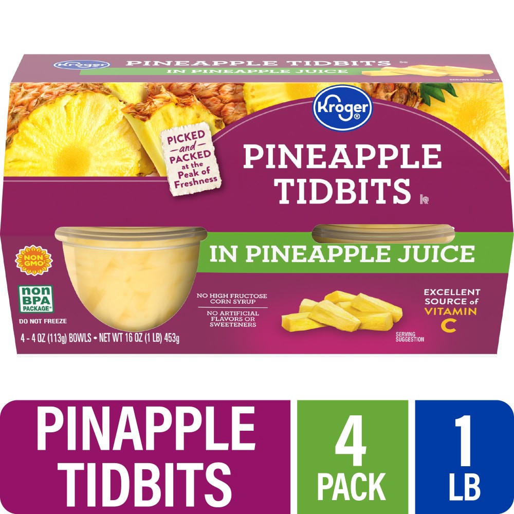 Pineapple tidbits in 100 pineapple juicenon gmonon bpa packaginga full serving of fruitno high fructose corn syrupno artificial flavors or sweeteners