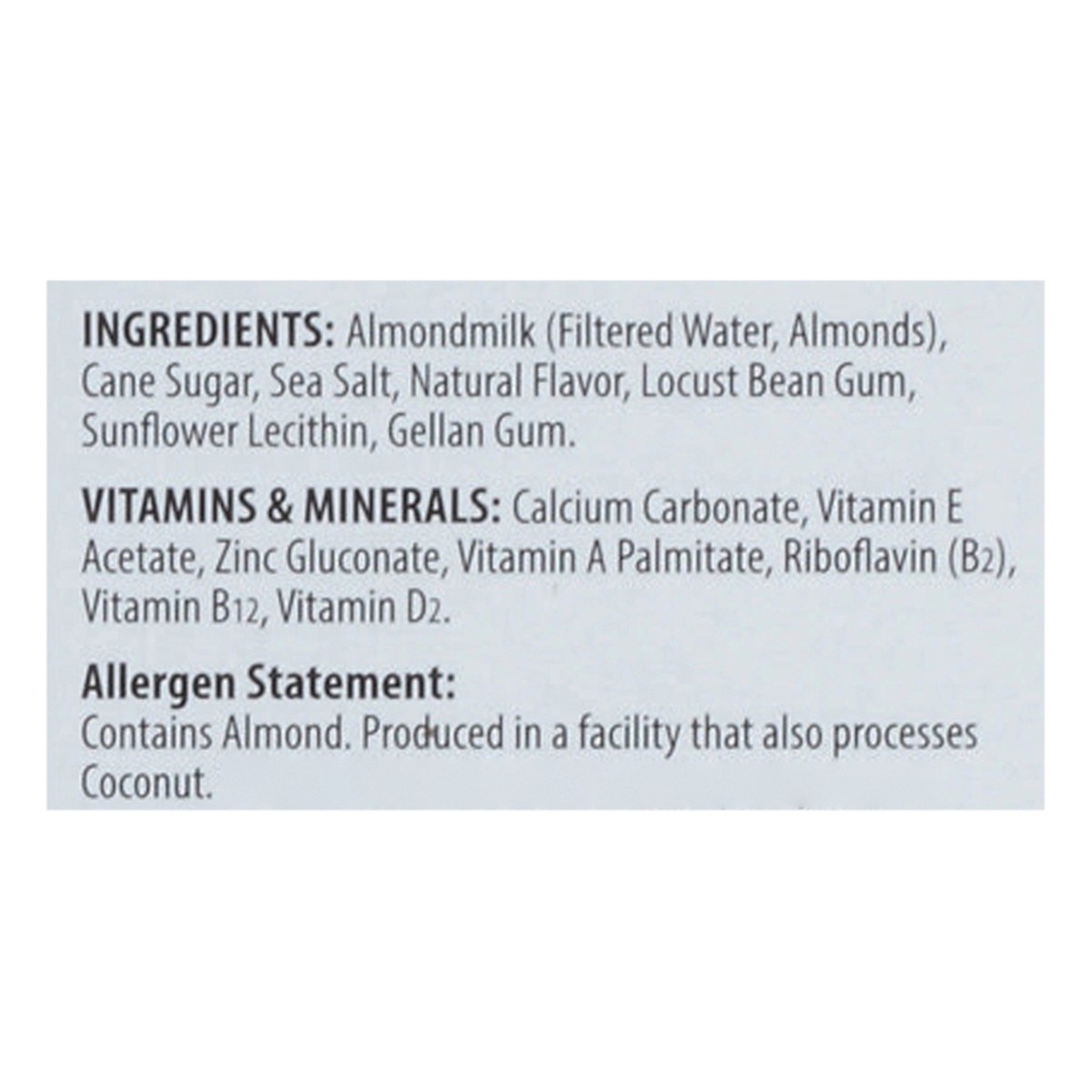 Almond Milk (Filtered Water, Almonds), Cane Sugar, Sea Salt, Natural Flavor, Locust Bean Gum, Sunflower Lecithin, Gellan Gum. Vitamins & Minerals: Calcium Carbonate, Vitamin E Acetate, Zinc Gluconate,…