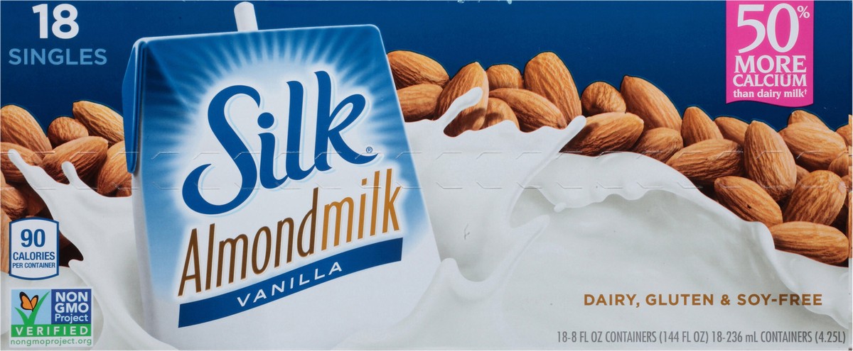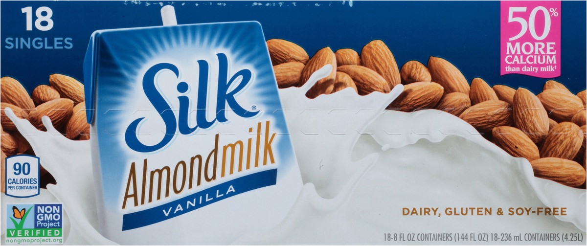 Silk Shelf-Stable Almond Milk Singles, Vanilla, Dairy-Free, Vegan, Non-GMO Project Verified, 8 oz., 6 Pack (Pack of 18)
