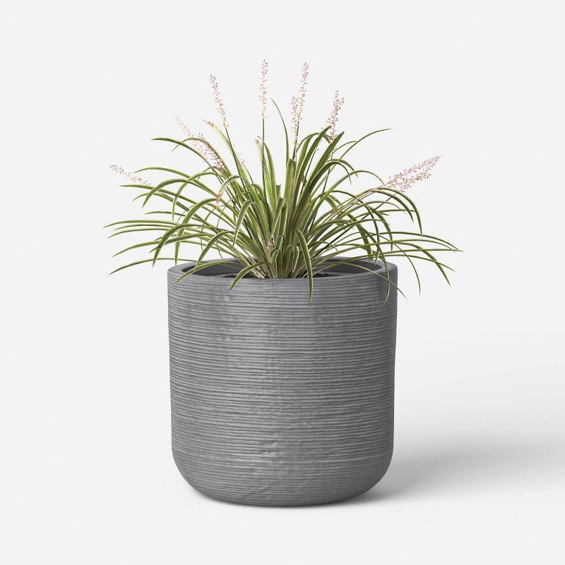 Display your favorite plants in style with this Fluted Outdoor Planter from Threshold™. This round planter is designed in a gray hue and features a fluted design to bring earthy vibes to your space. I…