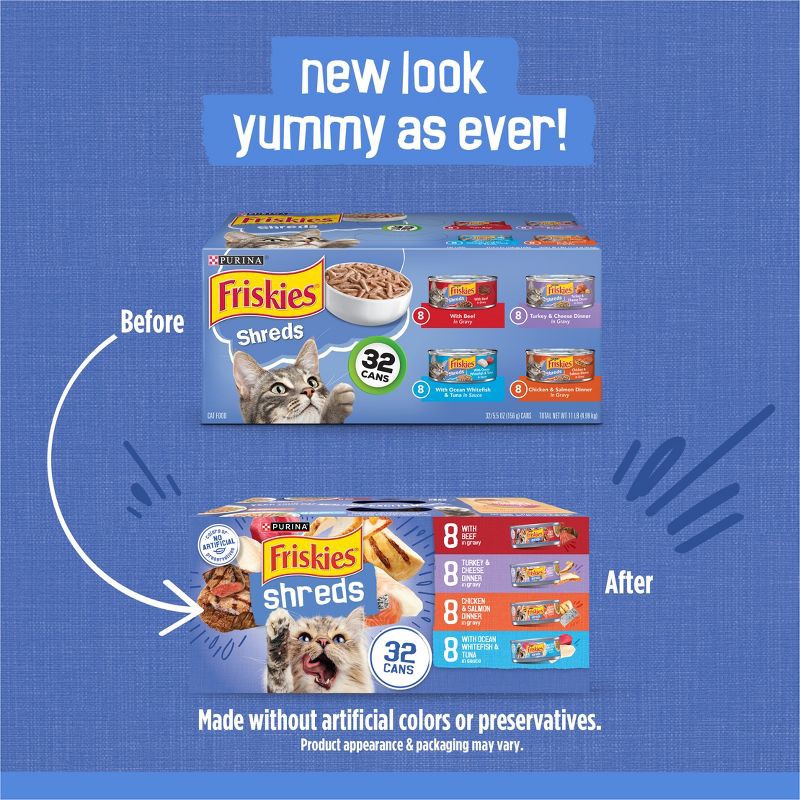 Purina Friskies Shreds Beef, Turkey, Whitefish & Chicken Wet Cat Food - 5.5oz/32ct Variety Pack