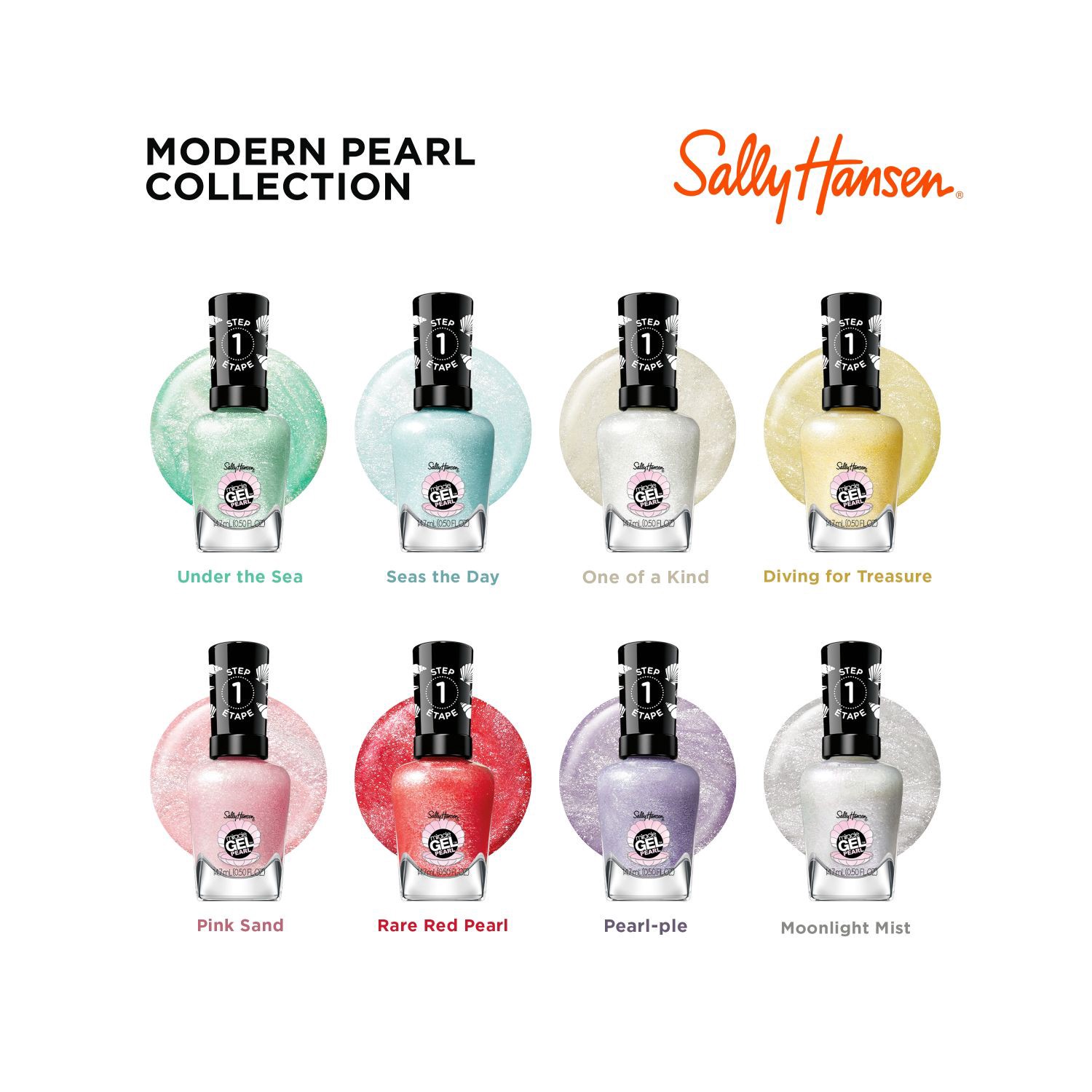 Sally Hansen Miracle Gel pearlescent glitter nail polish lacquers in 8 beautiful colors allow you to achieve an aquatic-inspired manicure. Reminiscent of the beautiful colors and textures of your favo…