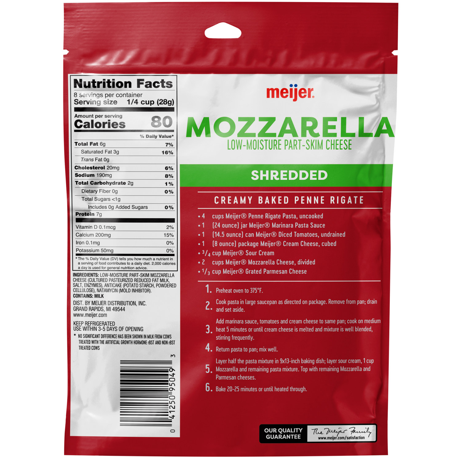 Meijer Shredded Mozzarella Cheese is a low-moisture, part-skim cheese that's perfect for adding a creamy touch to your favorite dishes. This resealable 8 oz pack contains about 2 cups of shredded chee…