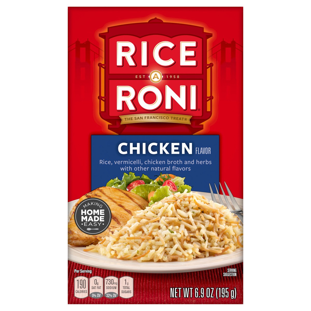 A family classic! Rice-A-Roni Chicken flavor blends rice and vermicelli with chicken broth, onions, parsley, garlic and other natural flavors to create a delicious side dish that will delight your who…
