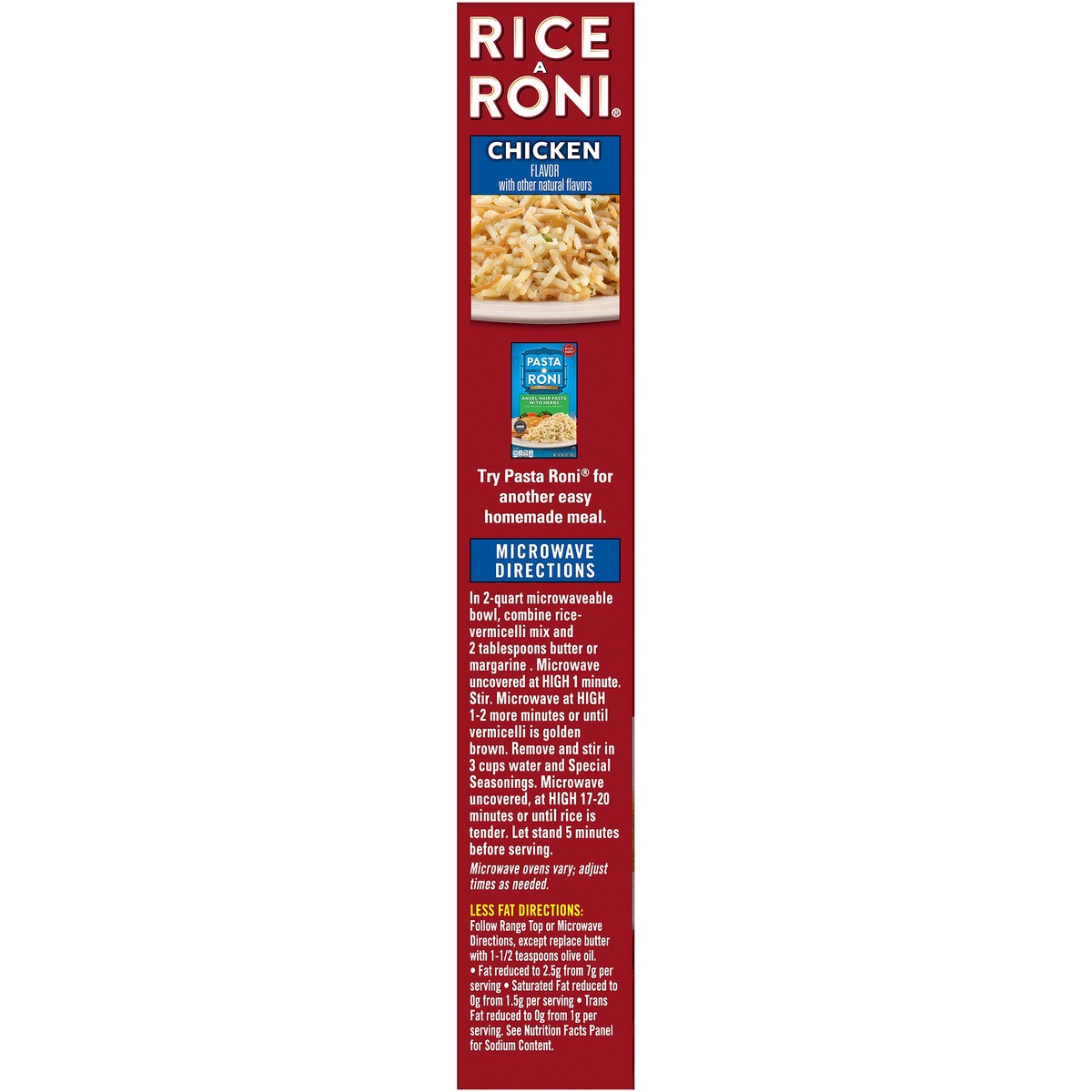 A family classic! Rice-A-Roni Chicken flavor blends rice and vermicelli with chicken broth, onions, parsley, garlic and other natural flavors to create a delicious side dish that will delight your who…
