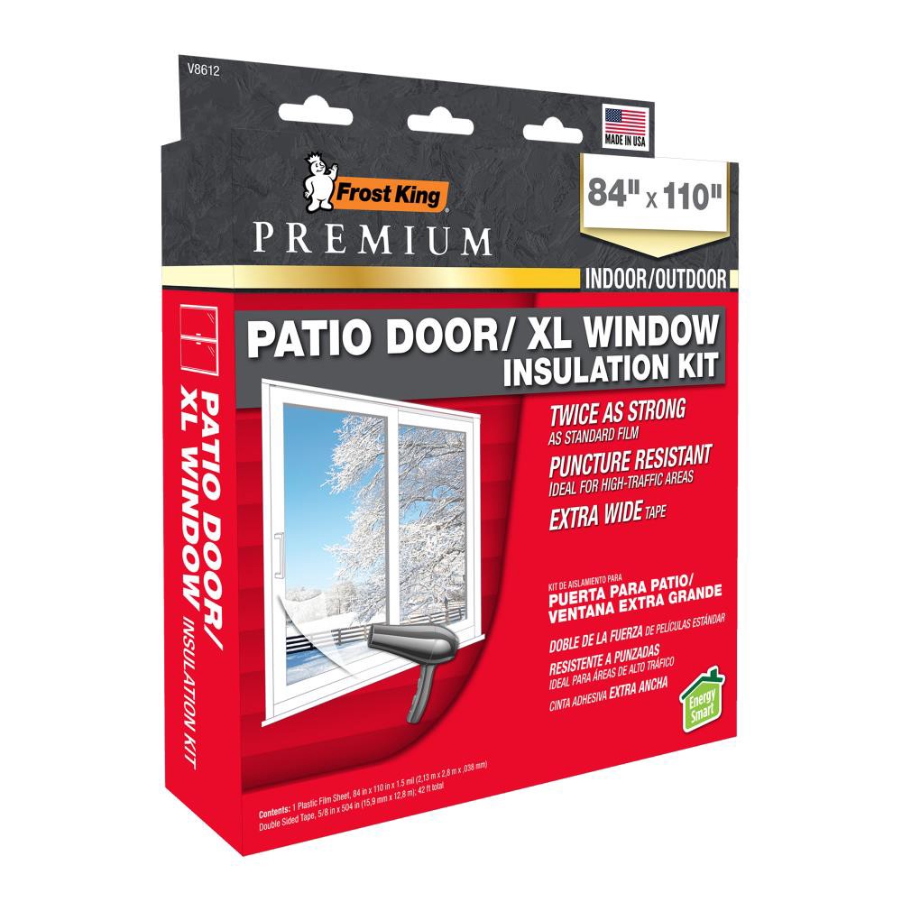 Crystal clear film. 1.5 mil thick twice as thick as standard film. Extra wide 5/8-in double sided tape. Fits 1 patio door or extra large window.