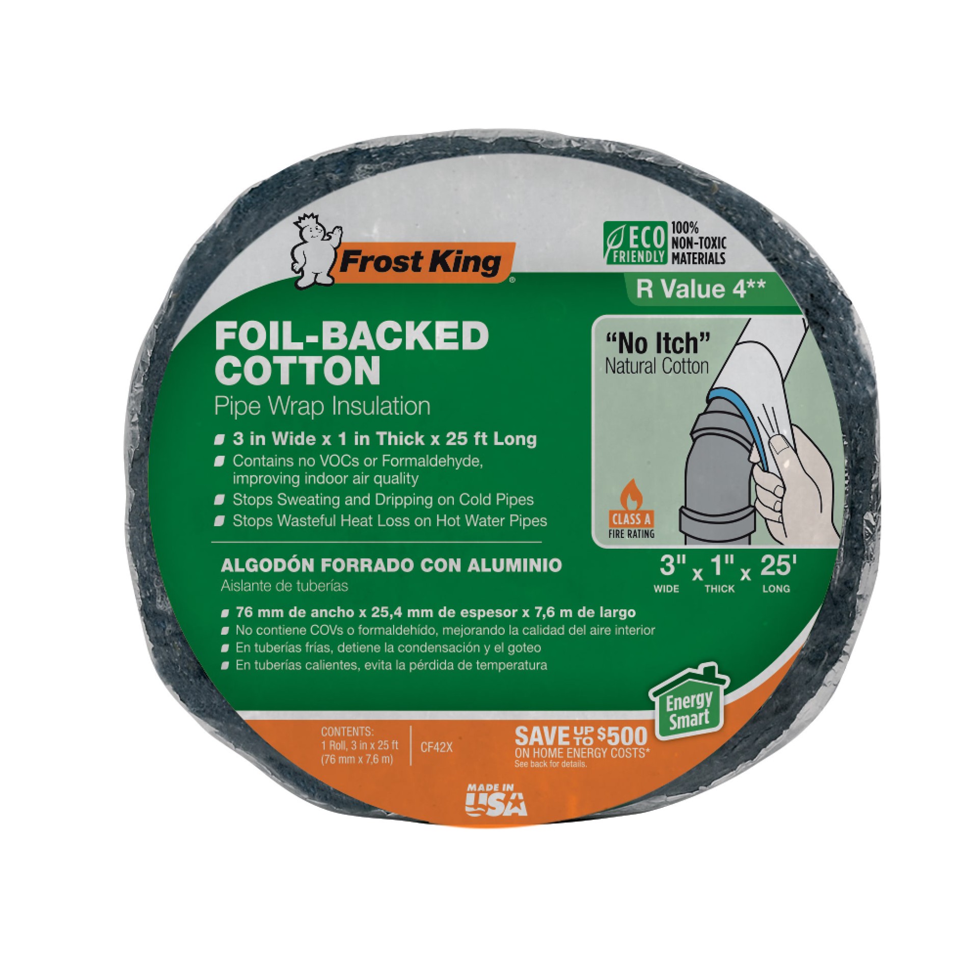 Stops sweating and dripping on cold pipes. Stops wasteful heat loss on hot water pipes. No itch natural cotton. Safe alternative to fiberglass insulation. Needs no gloves, goggles or mask.