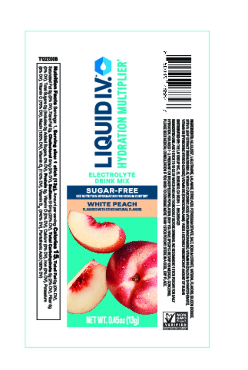 Liquid I.V. Hydration Multiplier Sugar-Free - White Peach - Hydration Powder Packets | Electrolyte Powder Drink Mix | Convenient Single-Serving Sticks | Non-GMO | Single Stick