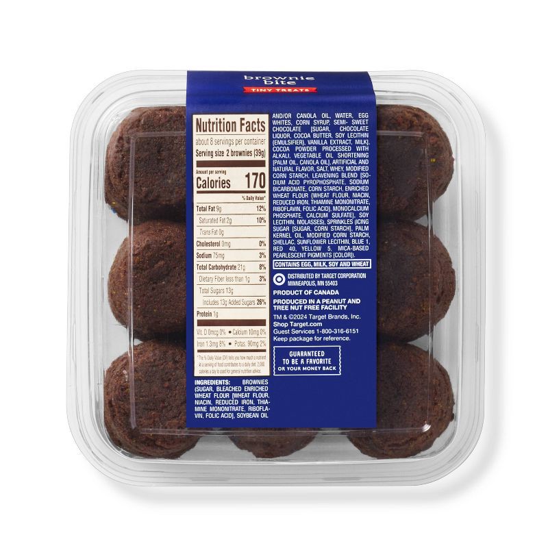 BROWNIES (SUGAR, BLEACHED ENRICHED WHEAT FLOUR [WHEAT FLOUR, NIACIN, REDUCED IRON, THIAMINE MONONITRATE, RIBOFLAVIN, FOLIC ACID], SOYBEAN OIL AND/OR CANOLA OIL, WATER, EGG WHITES, CORN SYRUP, SEMI- SW…