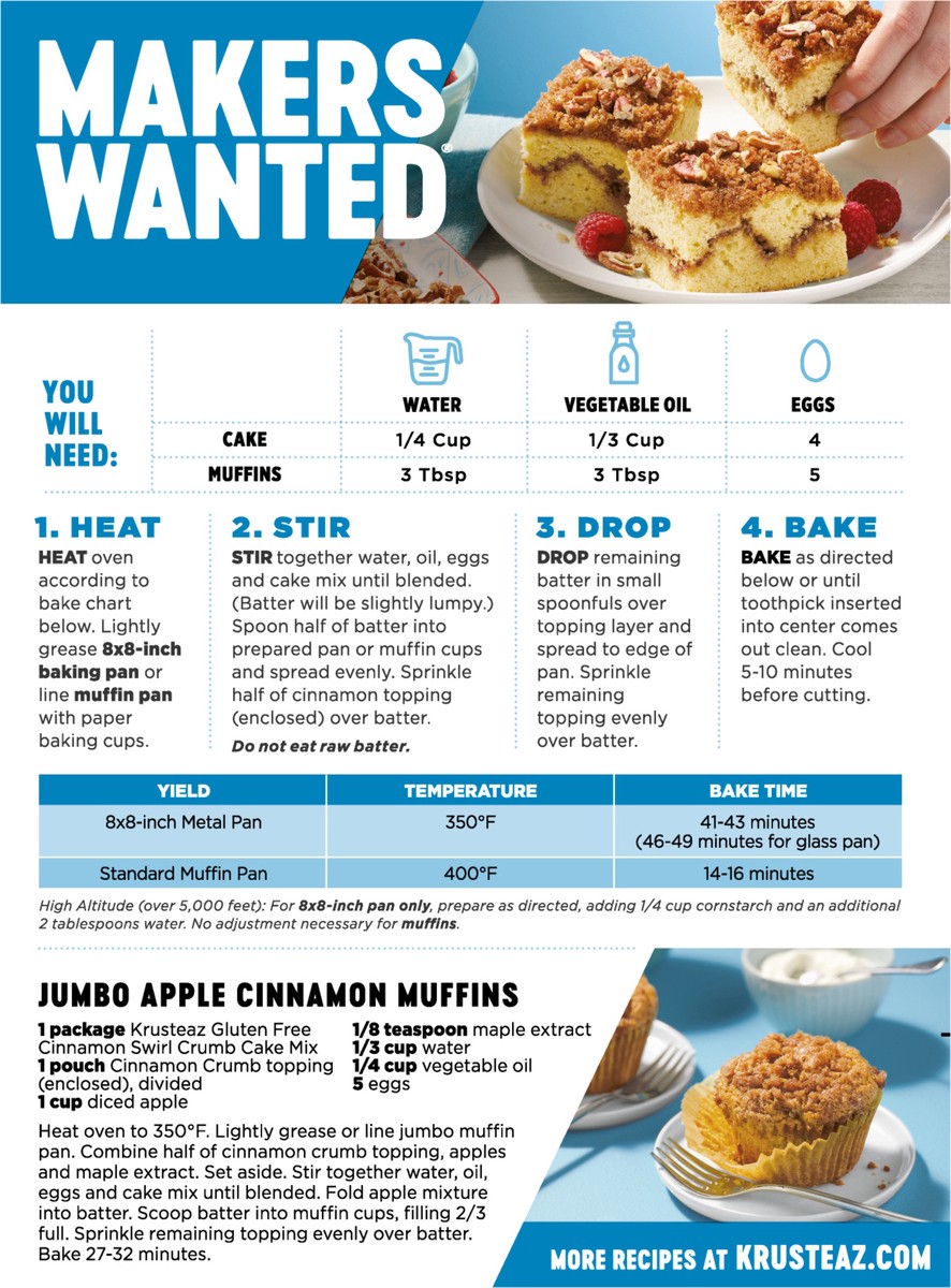 Here''s a perfect morning routine: while listening to your favorite podcast, spend 5 minutes whisking Krusteaz Gluten Free Crumb Cake mix with water, vegetable oil and eggs. Pop your tray in the oven …