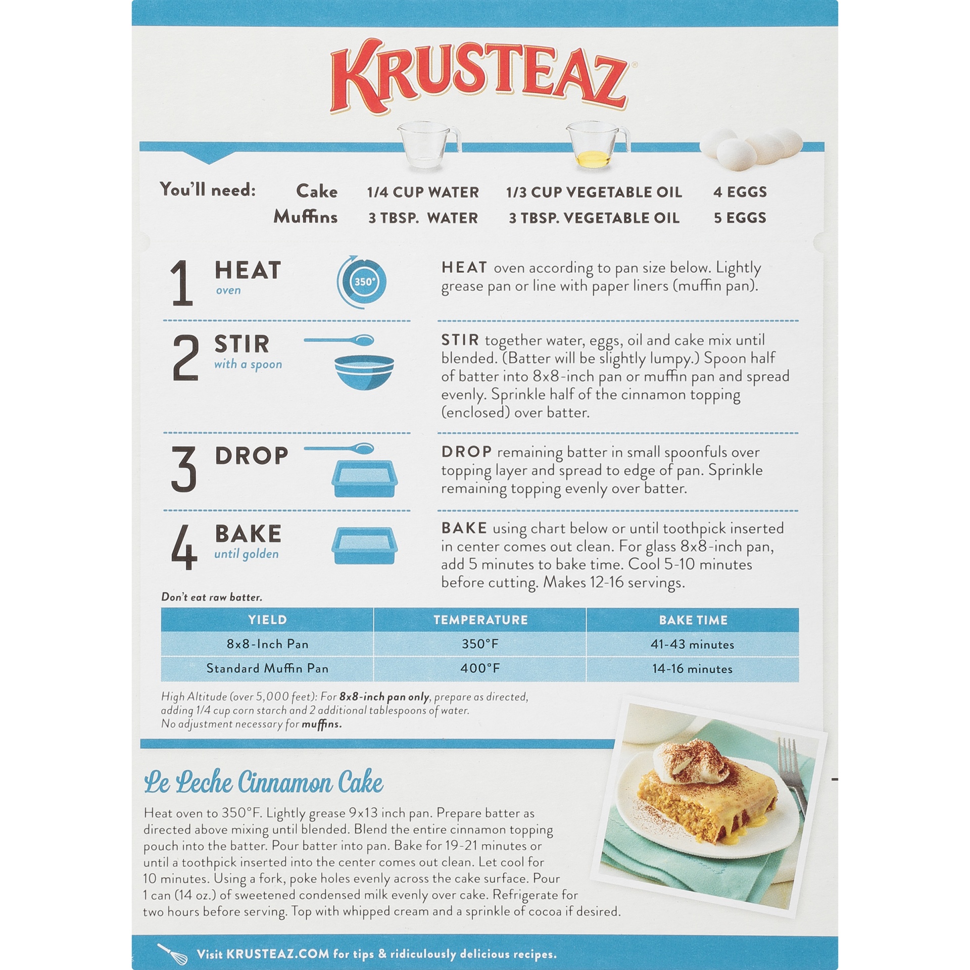 - MAKE IT YOUR OWN: Take Krusteaz crumb cake to the next level by adding your own ingredients like peaches, crumbled walnuts, brown sugar or rolled oats.