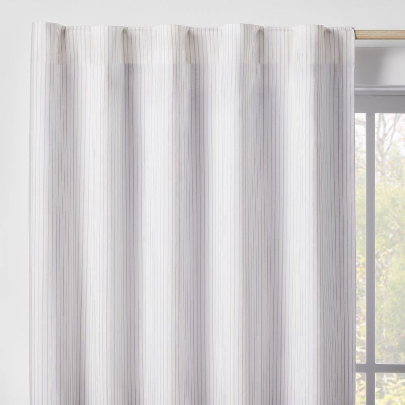 Help encourage your kiddo to sleep better with the Blackout Irregular Mini Stripe Panel from Pillowfort™. This lined blackout curtain panel not only helps block morning sunshine or bright afternoon li…