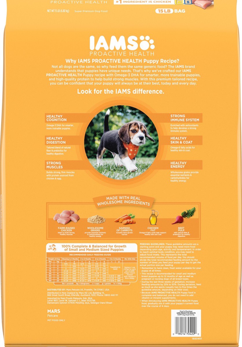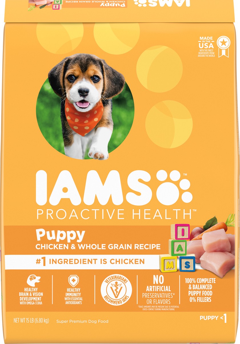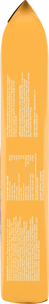 Calorie Content (Calculated): 3773 kcal ME/kg, 397 kcal ME/cup. Iams Proactive Health Puppy Chicken & Whole Grain Recipe Dog Food is formulated to meet the nutritional levels established by the AAFCO …
