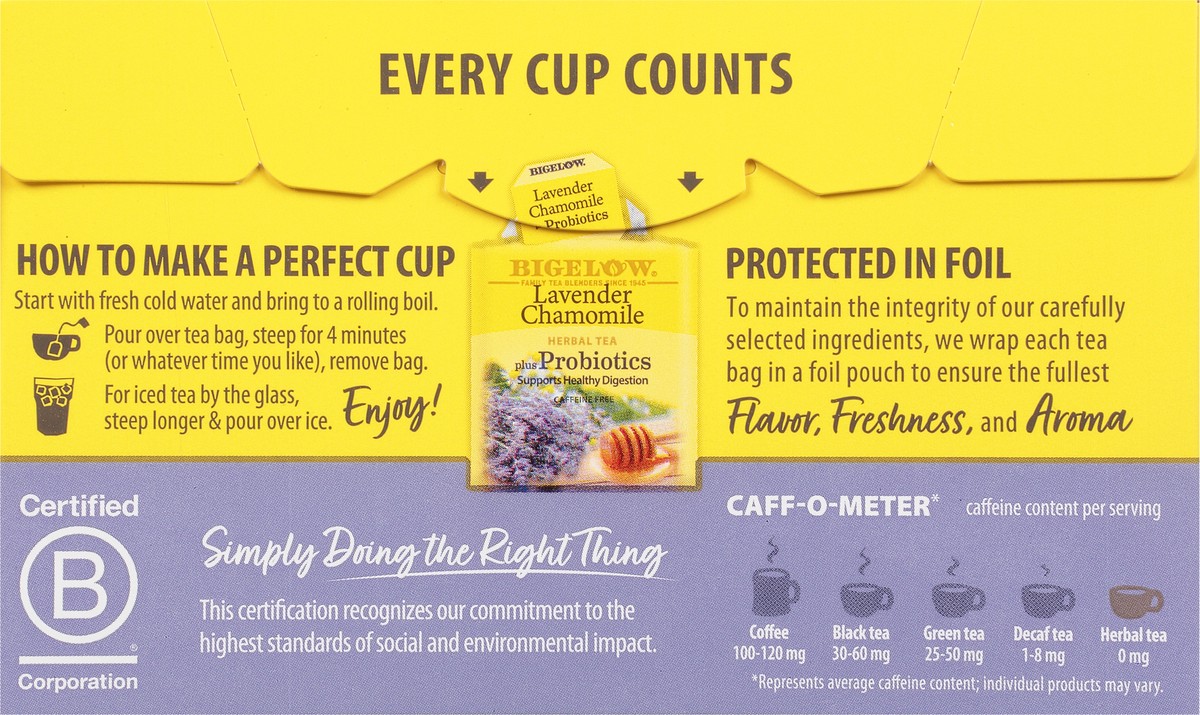 Bigelow Tea Bags Herbal Bags Lavender Chamomile Plus Probiotic 18 Count - 0.98 Oz