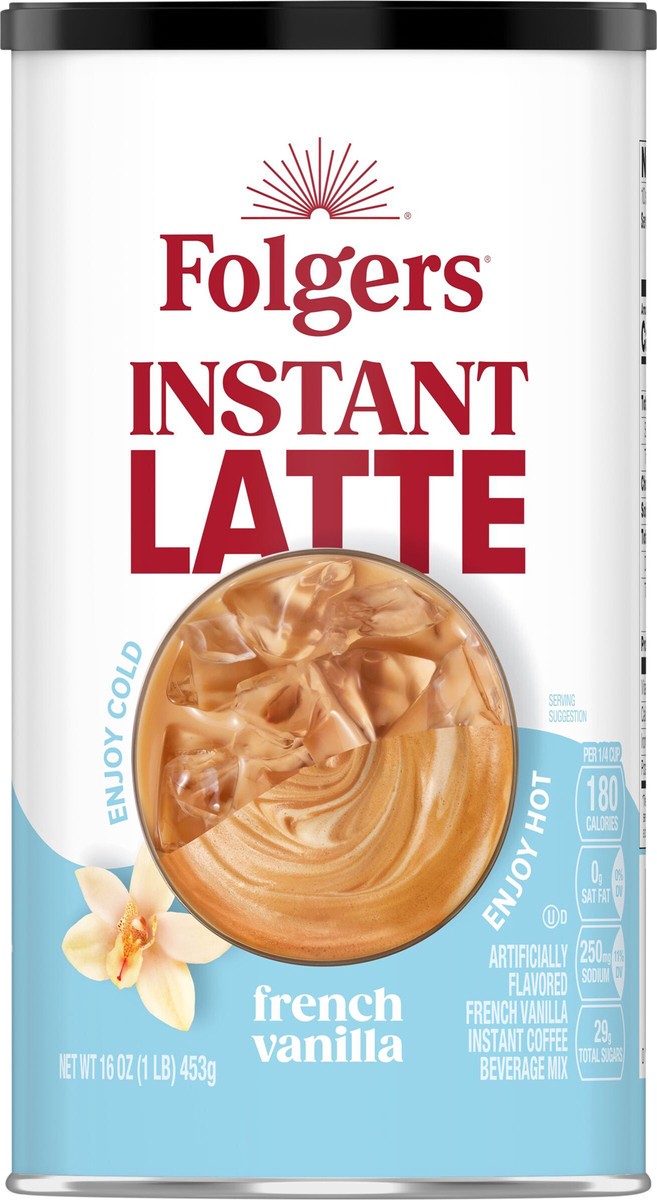 Folgers French Vanilla Instant Latte, Artificially Flavored Instant Coffee Beverage Mix, 16-Ounce Canister