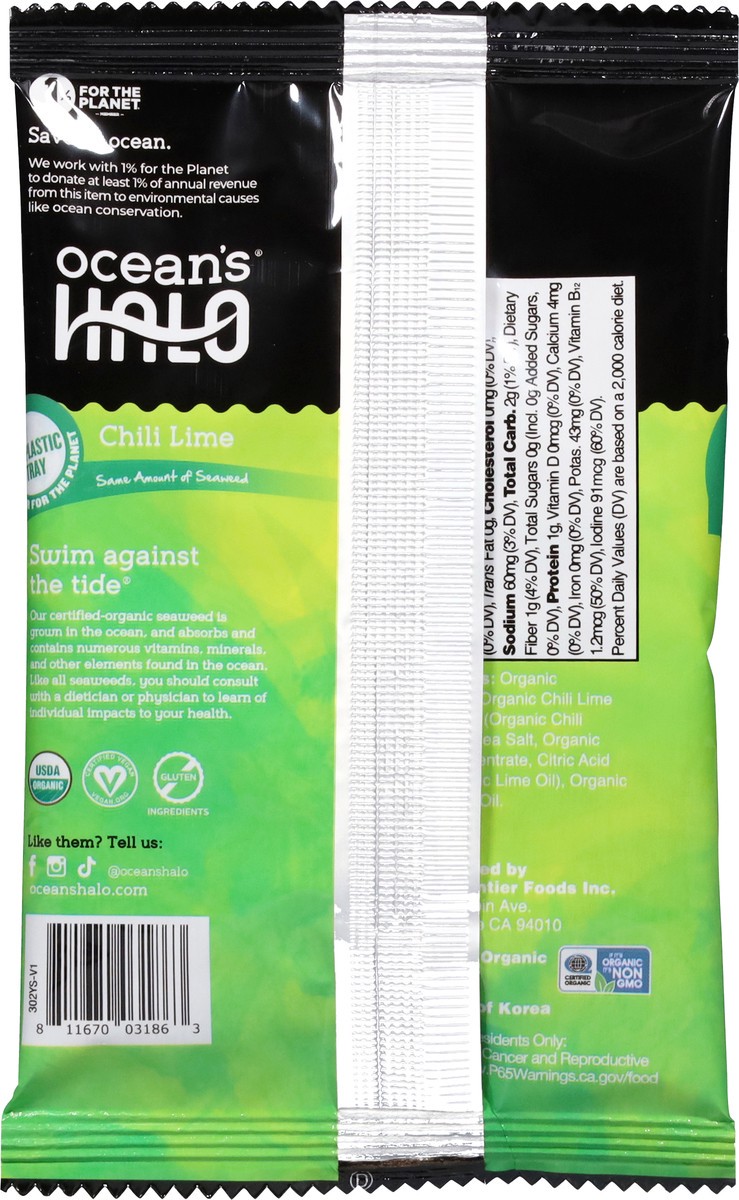 Ocean's Halo Chili Lime Seaweed Snack 0.14 oz