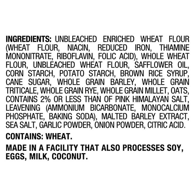 Enriched Flour (Wheat Flour, Niacin, Reduced Iron, Thiamine Mononitrate, Riboflavin, Folic Acid), Whole Wheat Flour, Wheat Flour, Safflower Oil, Corn Starch, Potato Starch, Brown Rice Syrup, Cane Suga…