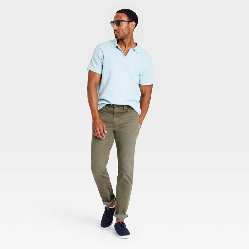 Men's Comfort Wear Slim Fit Jeans - Goodfellow & Co™ Olive Green 32x34: Mid Rise, Stretch Denim