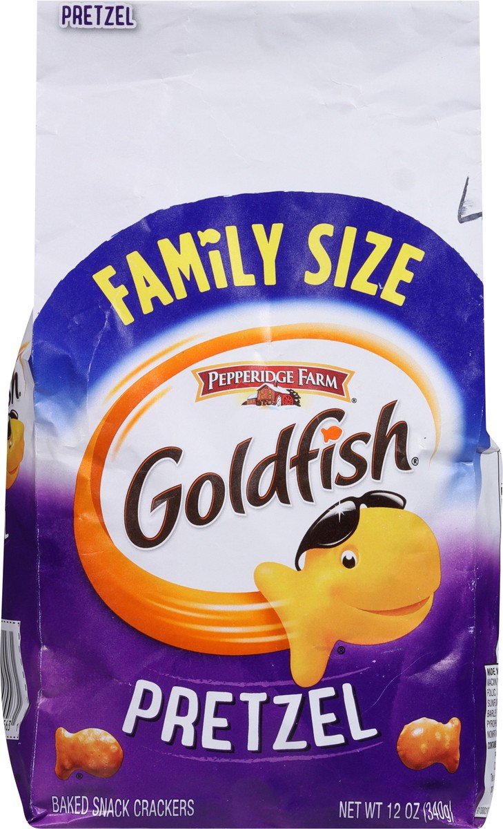 - Family Size bag of crisp and crunchy pretzels in the iconic Goldfish shape