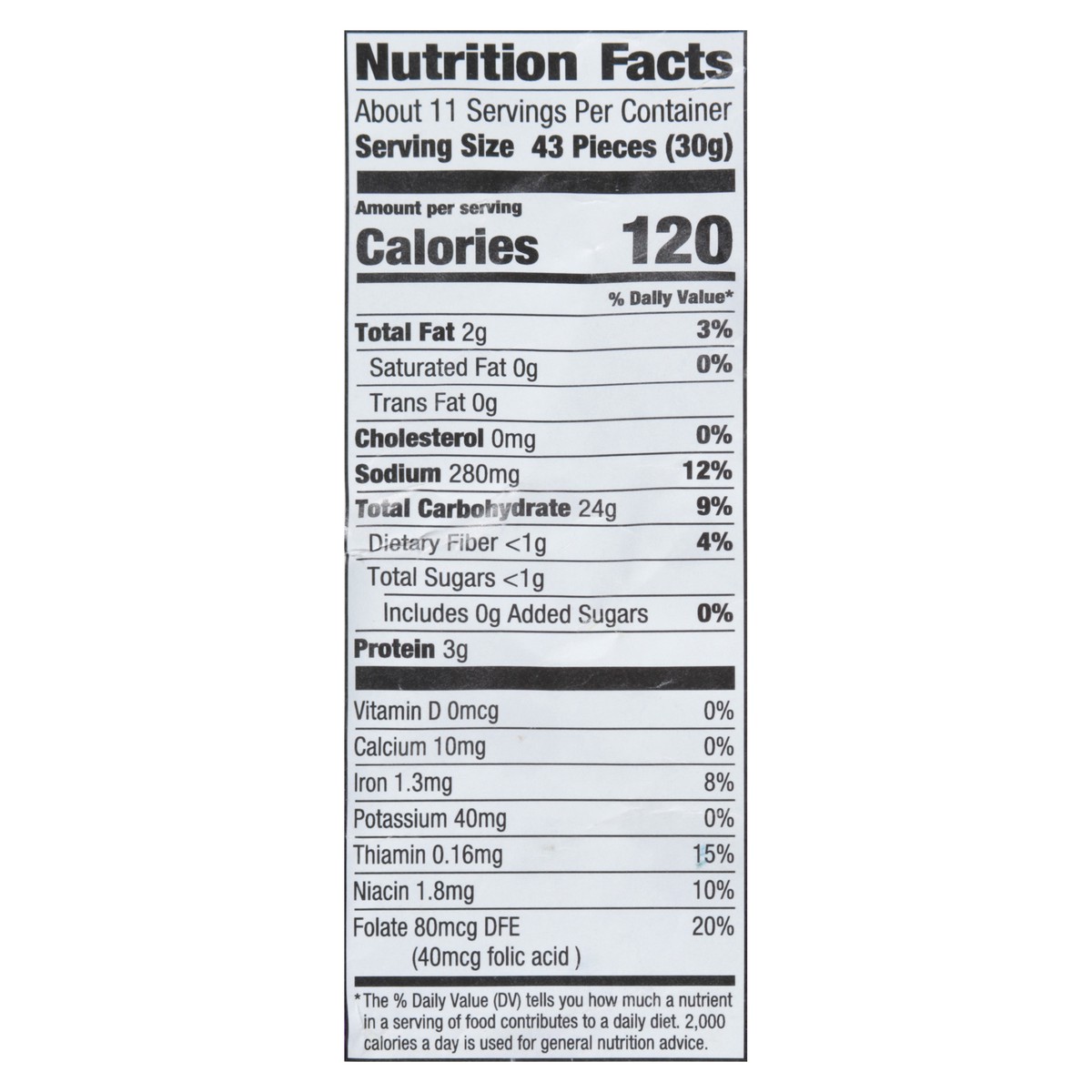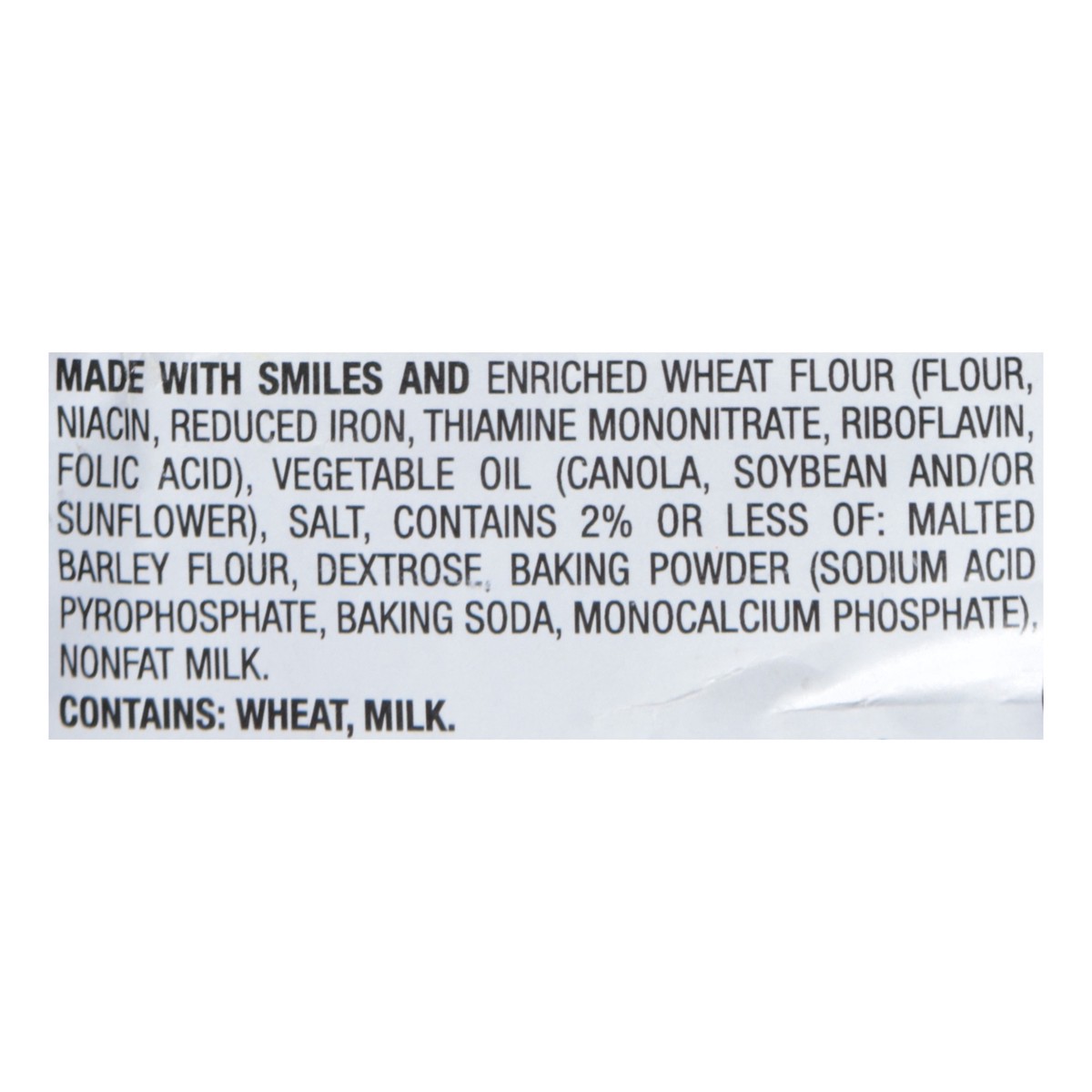 MADE WITH SMILES AND ENRICHED WHEAT FLOUR (FLOUR, NIACIN, REDUCED IRON, THIAMINE MONONITRATE, RIBOFLAVIN, FOLIC ACID), VEGETABLE OIL (CANOLA, SOYBEAN AND/OR SUNFLOWER), SALT, CONTAINS 2% OR LESS OF: M…