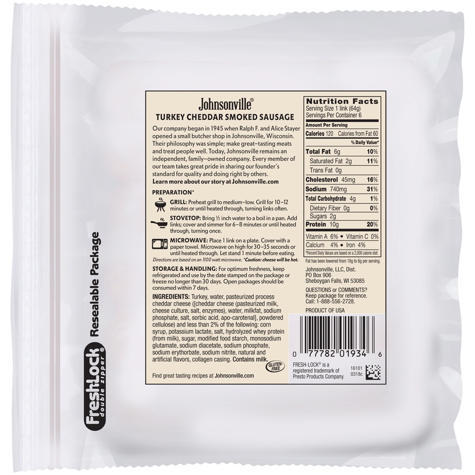 Johnsonville Turkey Cheddar Smoked Sausage, 6 Links, 13.5 oz