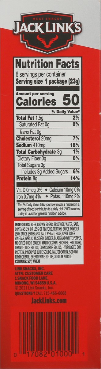 Beef, Brown Sugar, Fructose, Water, Salt, Contains 2% or Less of Flavors, Teriyaki Sauce Powder (Soy Sauce [Soybeans, Salt, Wheat], Sake, Apple Cider Vinegar, Garlic, Mustard, Ginger, Black and White …