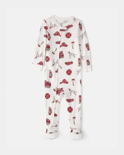 Carter's Toddler Boy Firetruck 100% Cotton Snug Fit 1-Piece Pajama Set - White - 4T