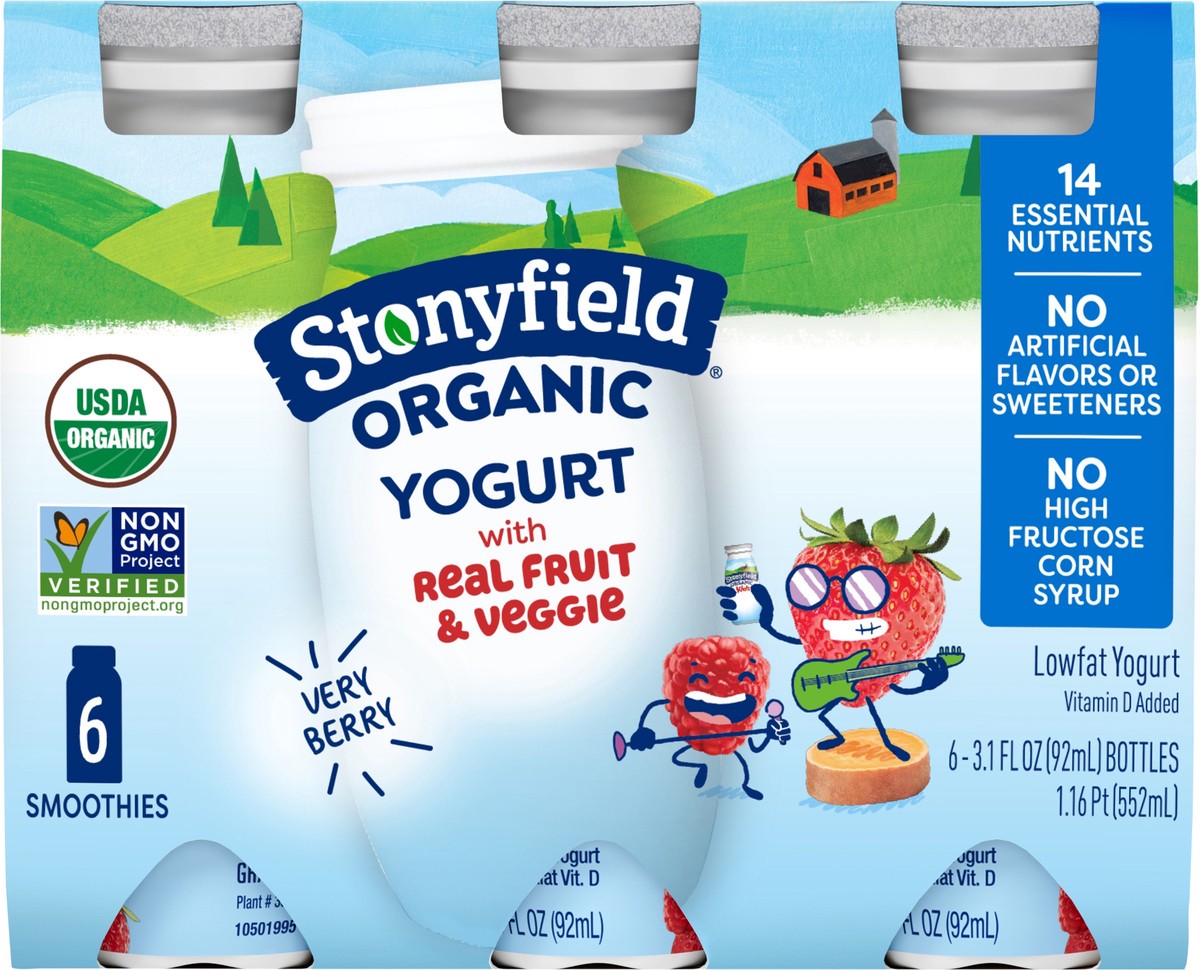 Stonyfield Organic Kids Yogurt Smoothie Lowfat Very Berry - 6-3.1 Fl. Oz.