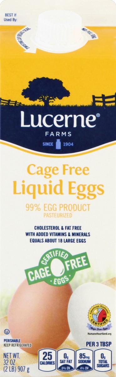 Since 1904. From Lucerne to Your Family: Lucerne Cage Free Liquid Eggs are made from 99% real egg product with added vitamins and minerals. Lucerne Liquid Eggs are great for scrambled eggs, omelets or…