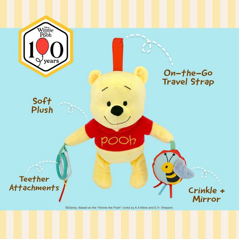 A classic version of Winnie the Pooh featuring a fun rattle, crinkle, mirror, and multiple textures to keep your baby entertained for hours. Attach the baby safe strap to a stroller or car seat for on…