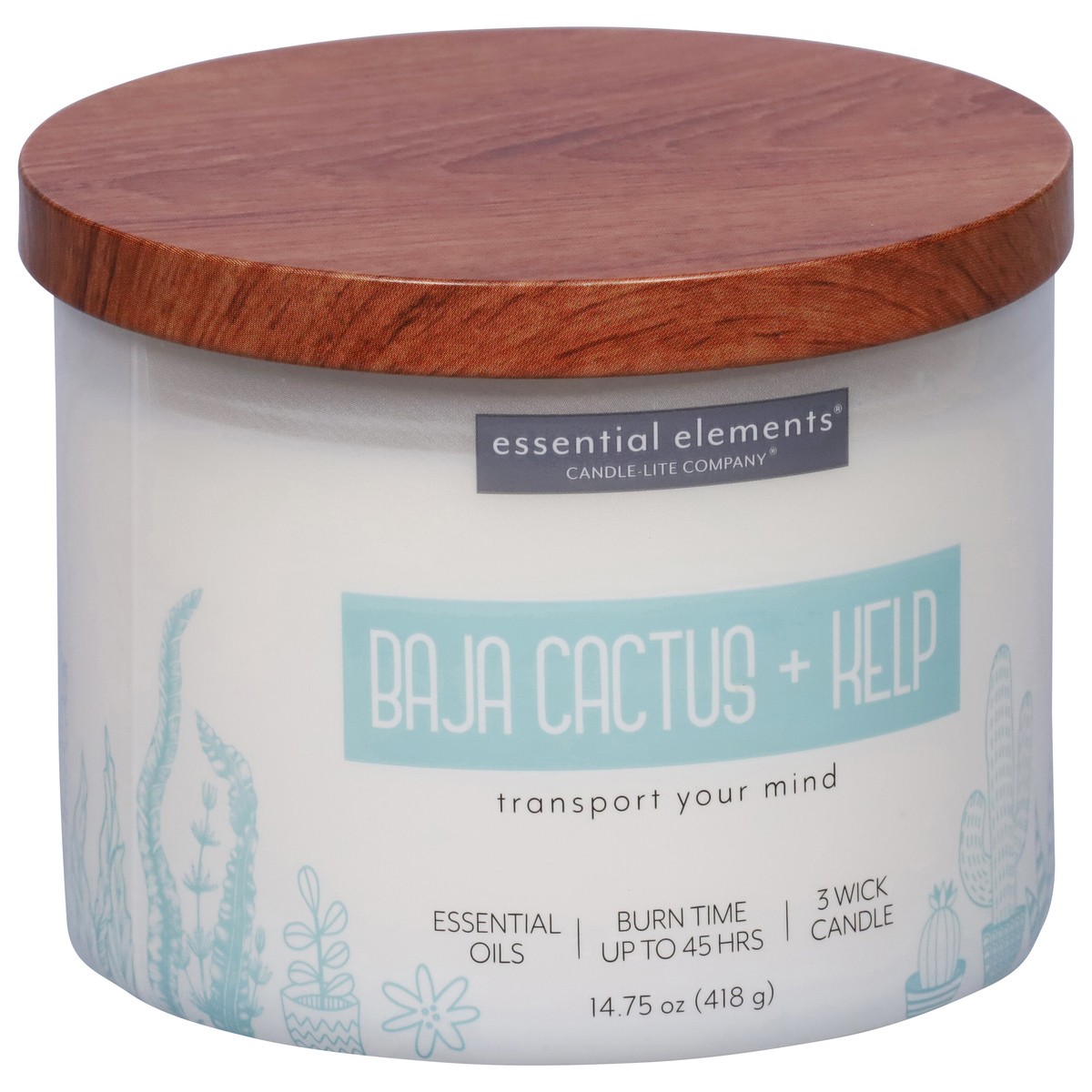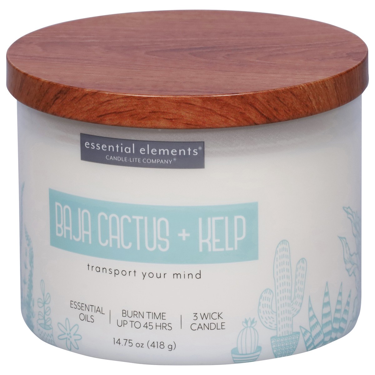 Essential Elements 3 Wick Baja Cactus + Kelp Candle 1 Each